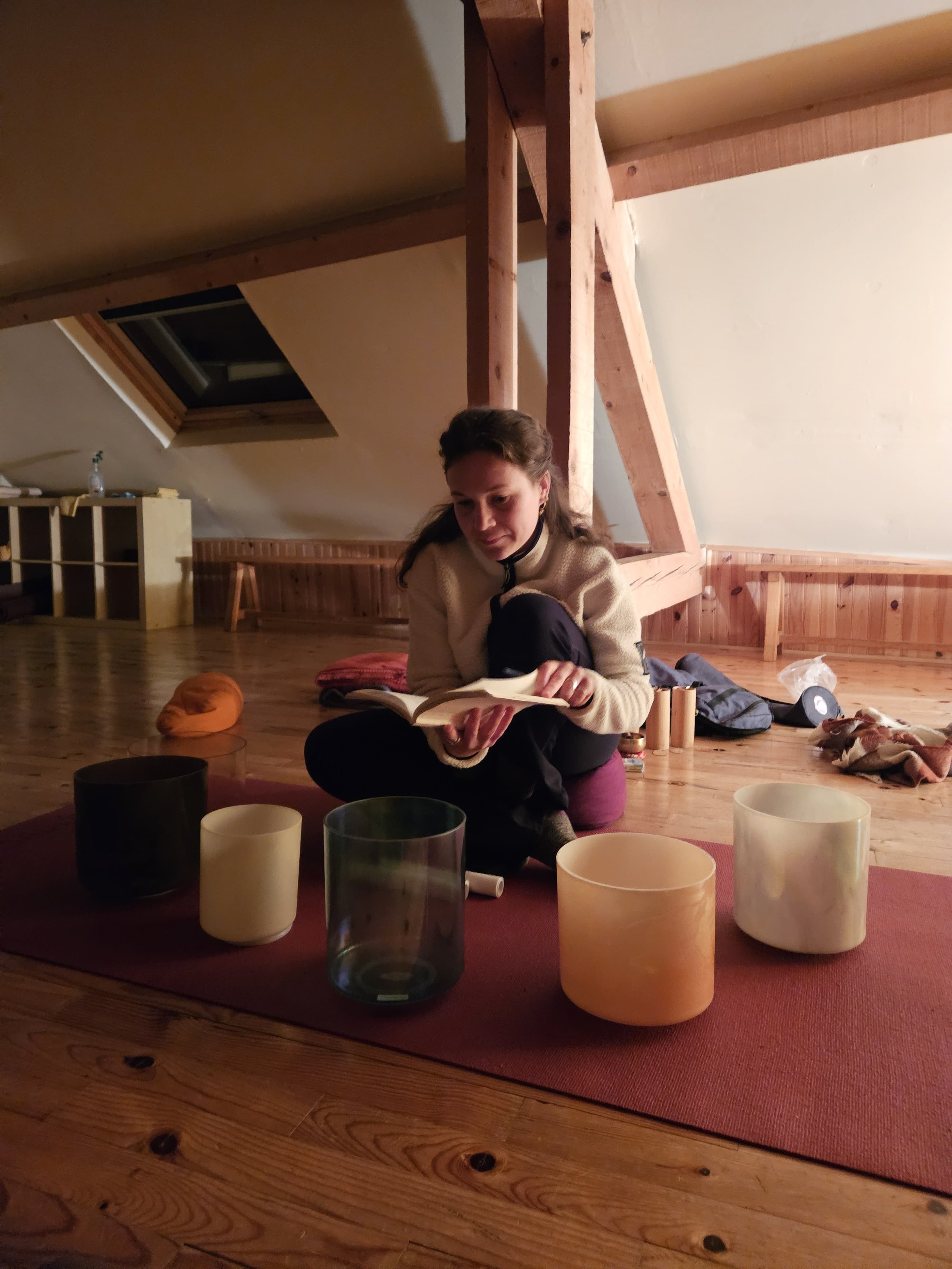 Le cours se termine par un Savasana (relaxation finale) au son des bols de cristal.